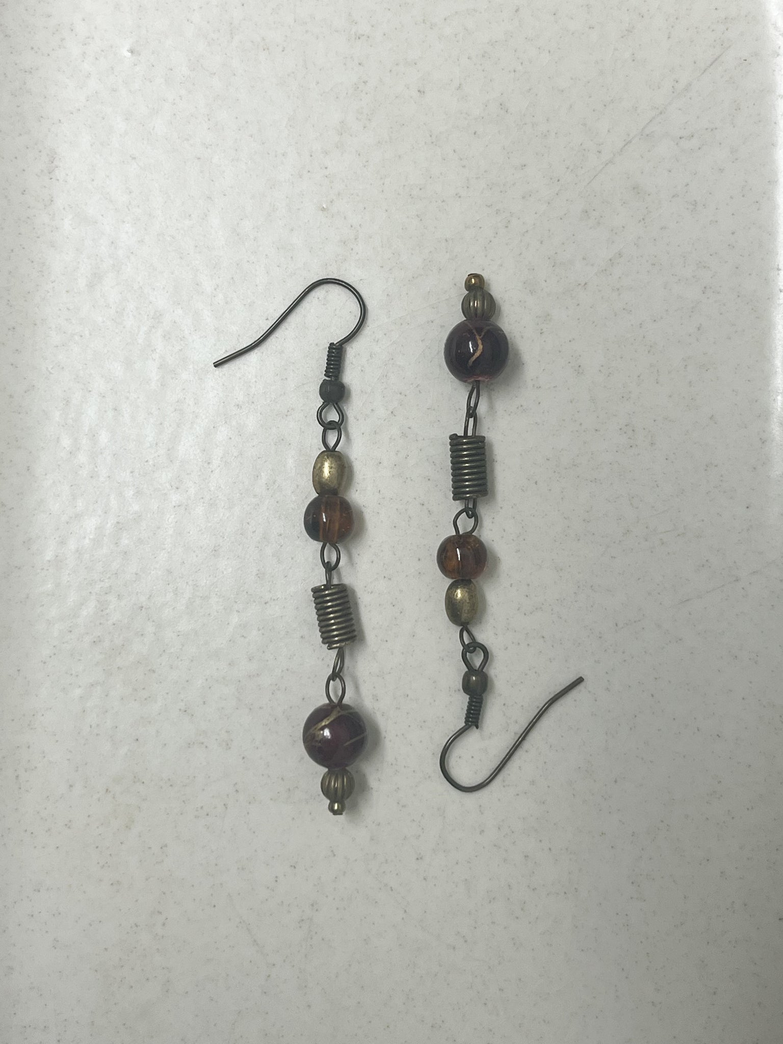 Maroon and golden dangling earrings are a statement.Β The playful golden accents add a touch of charm to your look.